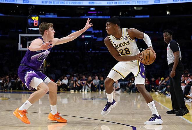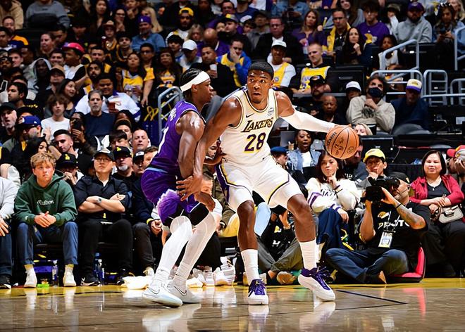 本场比赛中,湖人的先发锋线大将八村塁(Rui Hachimura)的表现还是相当不错的。八村塁全场出场28分58秒,投篮12中8,三分线外5中3,罚球4中3,得到了全队最高分22分外加10篮板1抢断的两双数据,还有3次失误和3次犯规,正负值也是达到了全场最高的+19。八村塁在进攻端保持了稳定的进攻效率,他在中远距离投篮方面的稳定性又一次令人刮目相看。在出手次数不多的情况下,他也是得到了大量的分数,在进攻端起到了很好的效果。八村塁在防守端的表现其实也是值得肯定的,他也是在篮板争抢方面起到了很好的效果,他在防守端的积极性也是值得肯定的。八村塁在本场比赛中算是打出了攻守兼备的全能型表现,这也是球队能够轻轻松松战胜对手的关键因素。